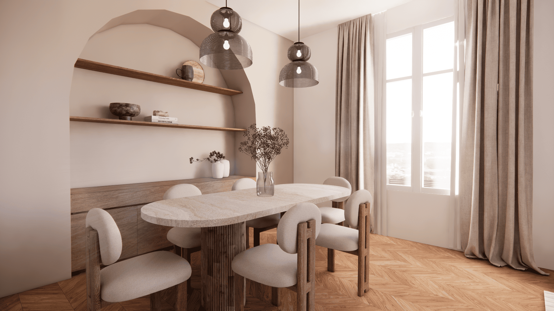 Chaque élément a été pensé pour créer une atmosphère harmonieuse, où chaque détail trouve sa place entre sobriété, élégance et convivialité.